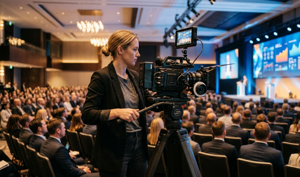 Conferences, product launches, award ceremonies, trade exhibitions, and any event where footage will be reused for marketing or internal purposes.